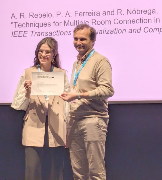 Ana Rita Rebelo, NOVA LINC’s PhD student, receives the Professor José Luís Encarnação 2025 the largest Portuguese award in Computer Graphics. The annual “Professor José Luís Encarnação” prize aims to encourage higher education students to carry out research activities of excellence in the area of Computer Graphics and Applications. This award is therefore addressed to students of Portuguese nationality of any cycle of Higher Education who demonstrate that they have published (and presented, in the case of a conference) a full paper in a forum of excellence. The prize was awarded in the ICGI 2025 conference to the following publication: